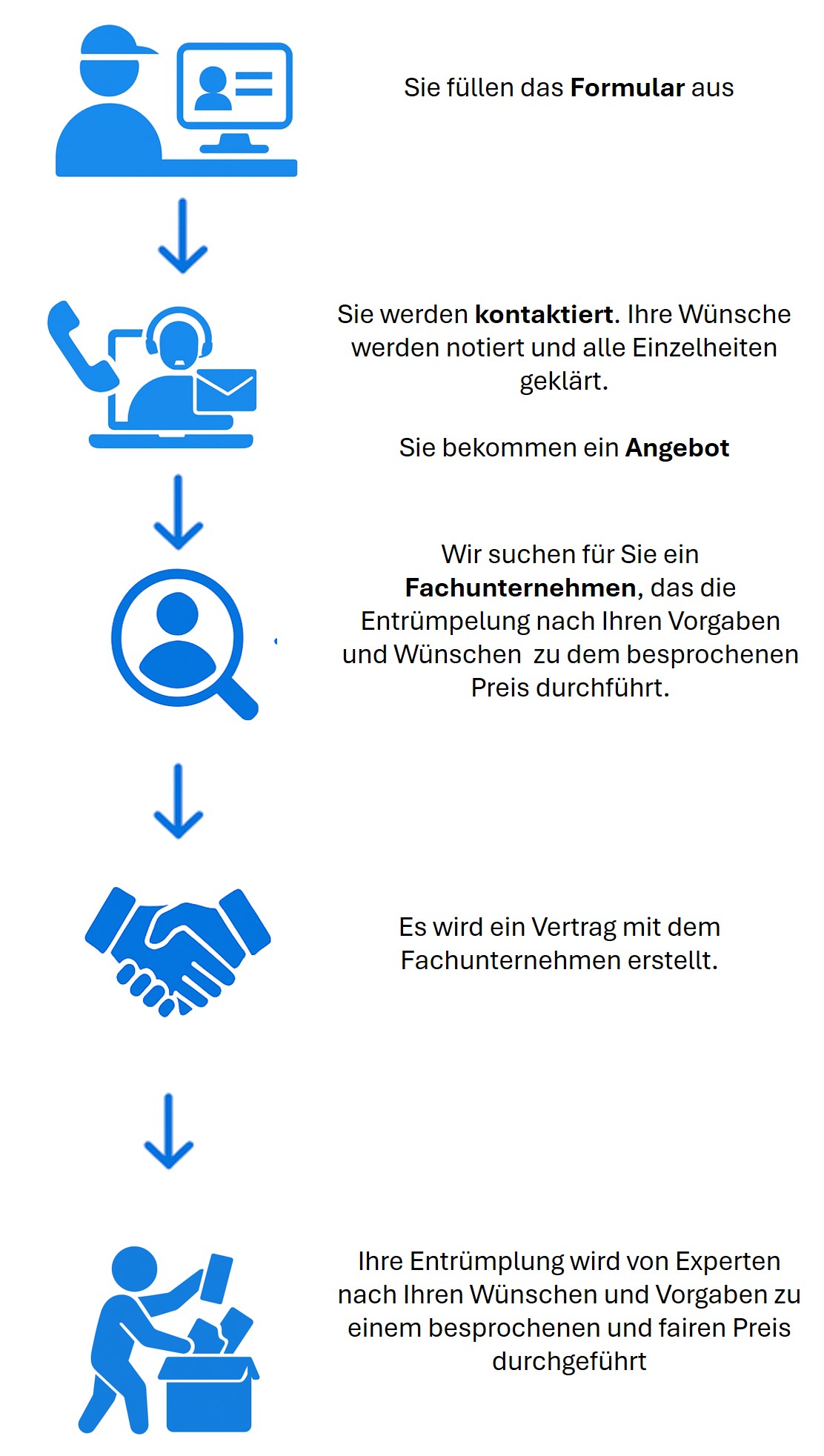 1. Sie geben Ihre Wünsche zu der Entrümplung in dem Kontaktformular auf unserer Webseite an.