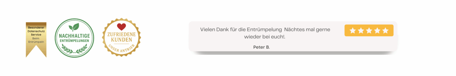 Auch wenn es eilig ist, stellt das für uns kein Problem dar. Entrümpel-Experten, mit denen wir zusammenarbeiten, reagieren schnell und gehen gerne auf besondere Wünsche ein.